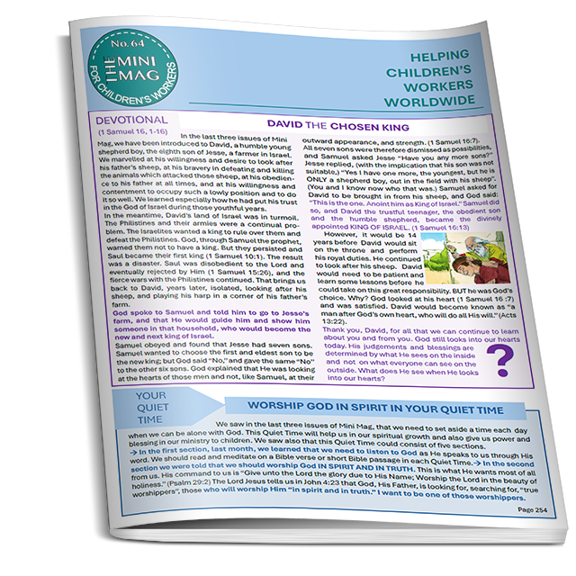 The Mini-Mag is written and published by Sam Doherty, with valuable input and guidance from Terry Flannigan and Kenneth Martin. Each of these men has held key leadership roles for many years in the global ministry of Child Evangelism Fellowship®. The content of every issue reflects the author’s 75 years of experience in CEF, including service as National Director of CEF Ireland, European Regional Director, and founder of the CEF Specialised Book Ministry.